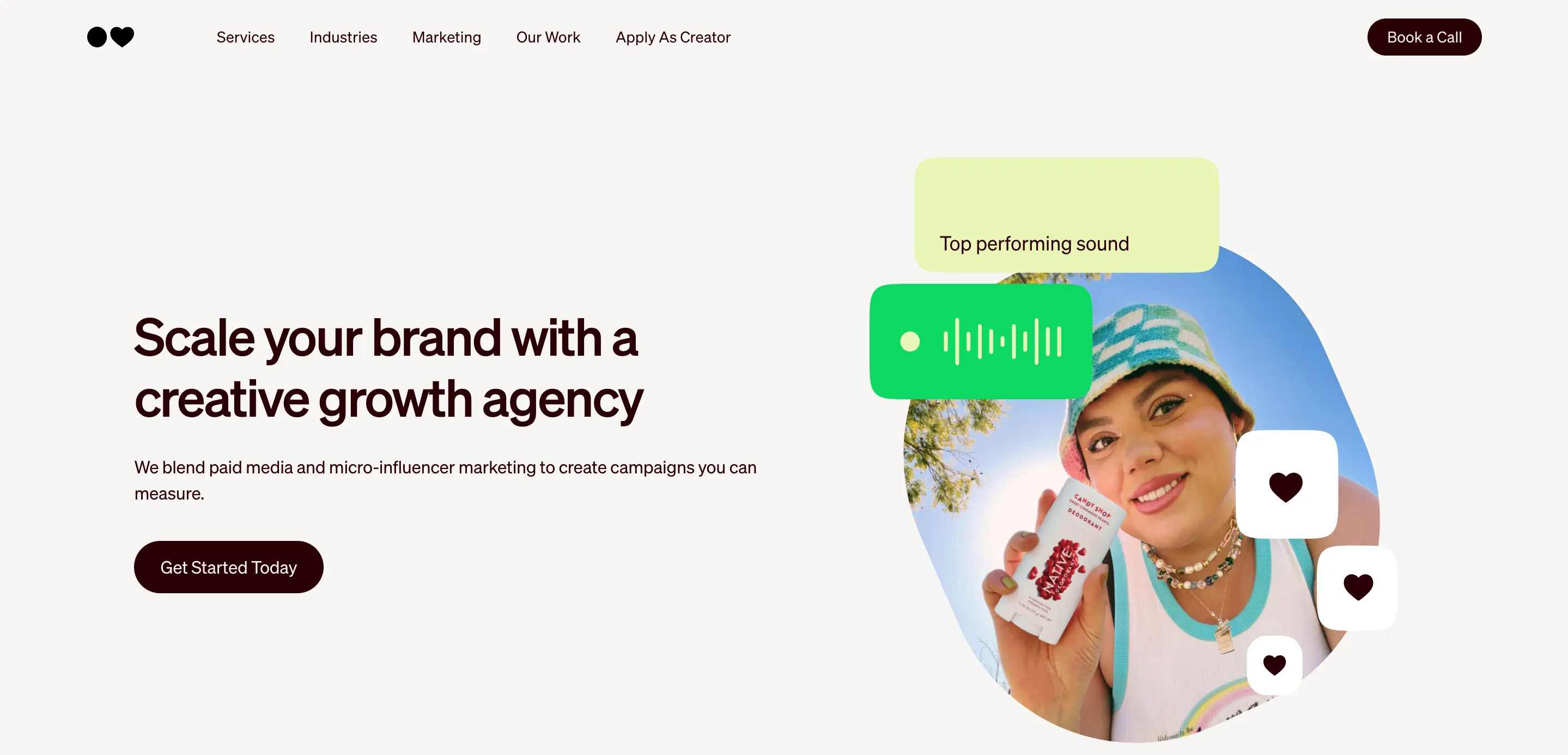 Known for: inBeat is known for being the "go-to" agency for high-volume, performance-driven micro-influencer and nano-influencer marketing. The agency is a specialist in lowering Customer Acquisition Costs (CAC) by producing a constant stream of fresh, authentic User-Generated Content (UGC). inBeat is recognized for its "testing engine" approach, where they manage hundreds of creator collaborations to find the winning ad creative. They are the preferred partner for fast-growing CPG, SaaS, and mobile app brands that need to scale rapidly.