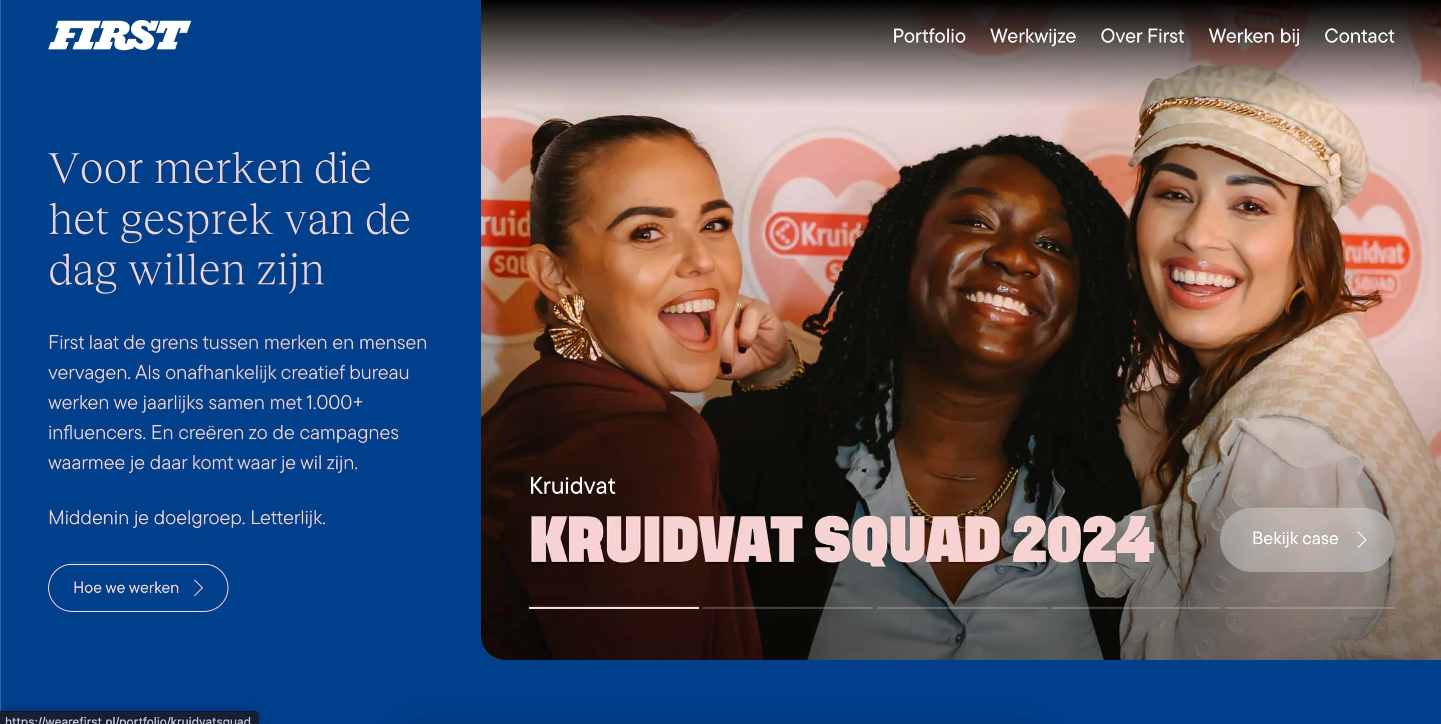 Known for: First is an Amsterdam-based agency that prioritizes authenticity and "Storytelling over Shouting." They are known for creating campaigns that feel like an organic part of a creator's existing content rather than a disruptive advertisement. By focusing on high-trust integrations, they help brands build genuine connections with their target audiences. Their approach is social-first, ensuring that every piece of content is optimized for the platform and the specific community it lives in.