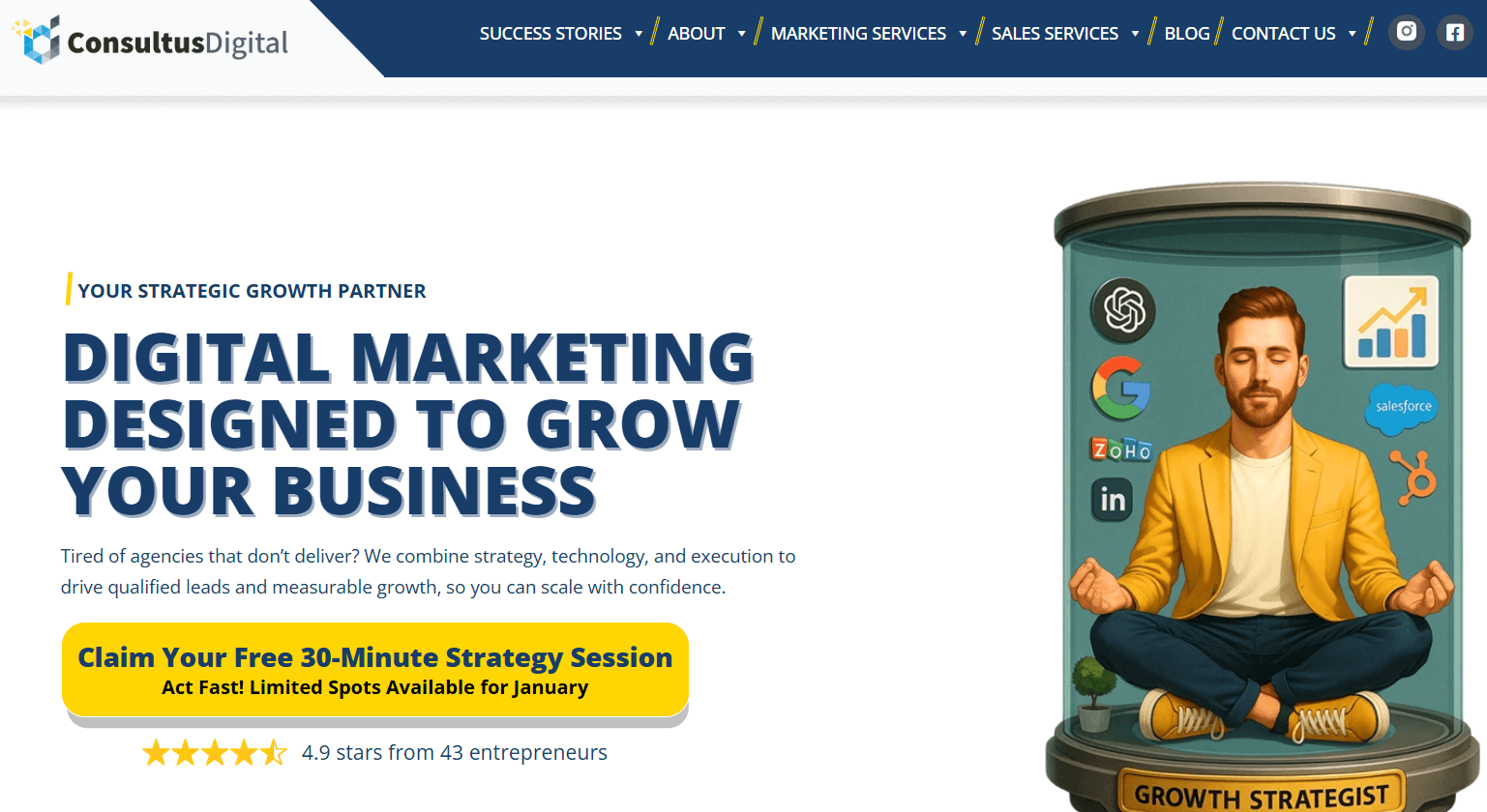 Consultus Digital is known for integrating influencer-driven content into broader performance marketing strategies. Rather than running standalone influencer campaigns, the agency uses creators as part of full-funnel growth systems that support lead generation, conversion optimization, and paid media. Consultus Digital is particularly effective for brands that need influencer content to support influencer marketing budget planning across SEO, paid ads, and funnels.