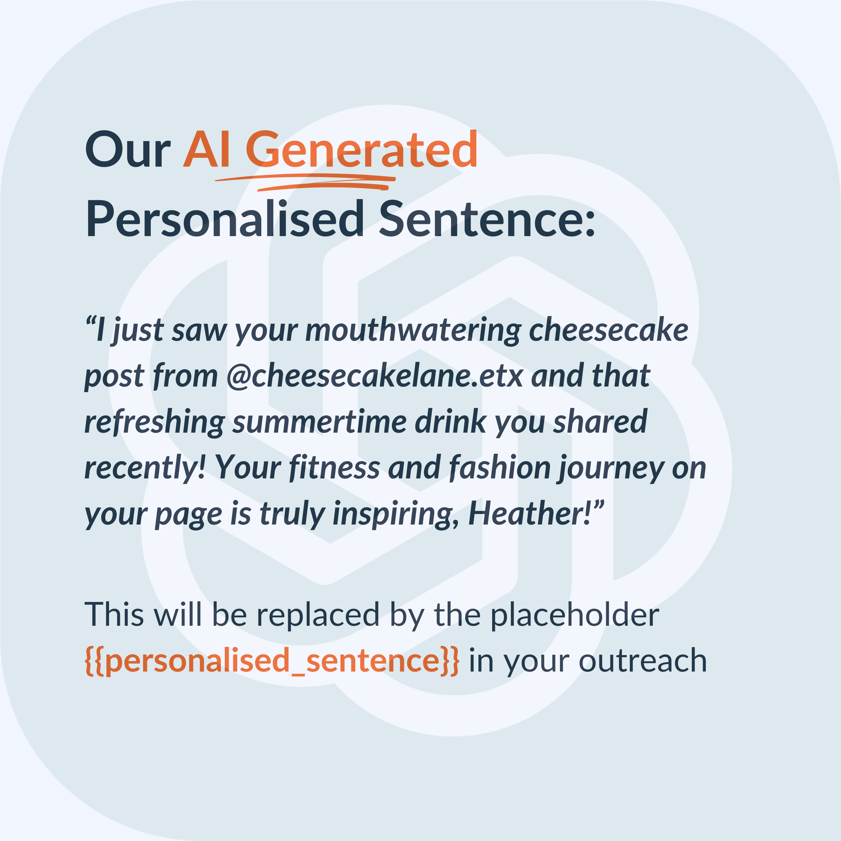 How does this work in practise? You simply add the placeholder {{personalized_sentence}} into your influencer outreach templates and done, the system will automatically replace this placeholder with a hyper-personalised sentence!