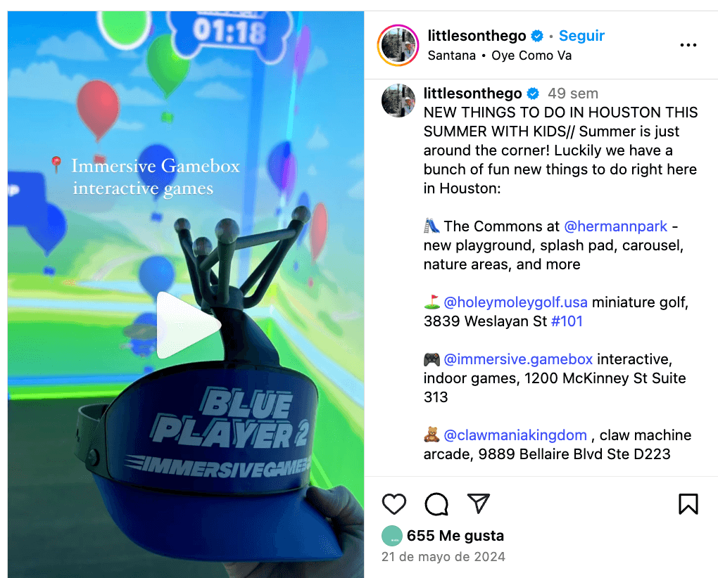 @littlesonthego (45K) is a creator who focuses on fun, family-friendly activities in Houston. She was a perfect match for the campaign, creating an authentic post which matched her style by including our experiences amongst other recommendations.