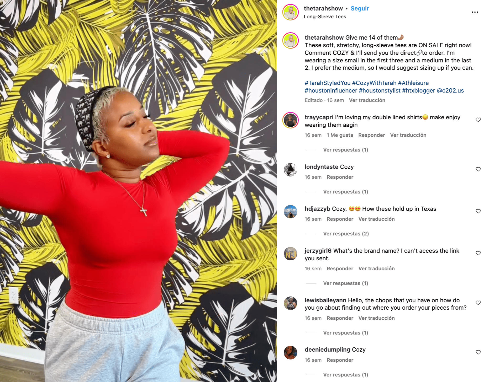 This is an advantage because you don’t need to send influencers new products repeatedly. They already have it available for long-term use and can create various types of content featuring the product in the background. For example, Fashion & Lifestyle influencer @thetarahshow made multiple posts for other brands showcasing her outfits in a room with the wallpaper as the backdrop.