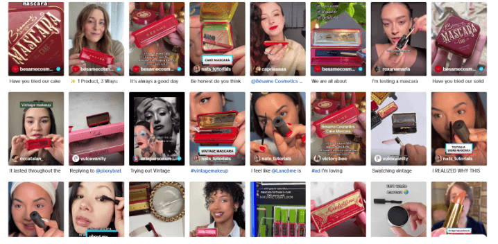 Campaign strategy: The make up brand partnered with TikTok two types of influencers: Those who create makeup tutorials and the ones who upload vintage-themed content. These influencers posted 30 to 90 seconds videos showcasing Bésame’s products and their final makeup looks, tagging the brand and using specific hashtags like "Cakemascara" and "Besame" to enhance visibility and track engagement.