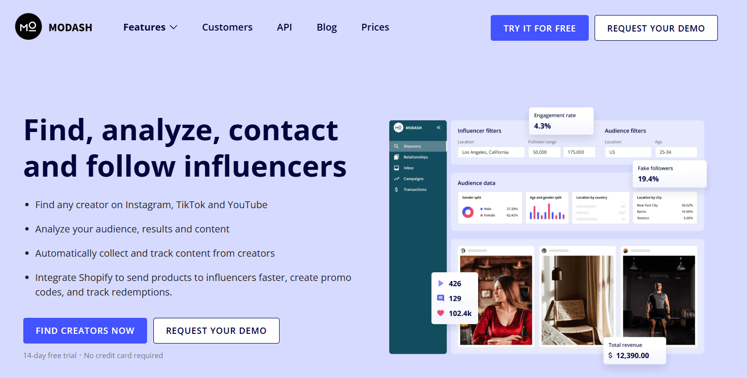 Founded in 2018, Modash quickly became a leading platform in the world of influencer marketing. It has one of the largest databases of micro-influencers, which combined with its other tools helps brands make data-driven decisions.