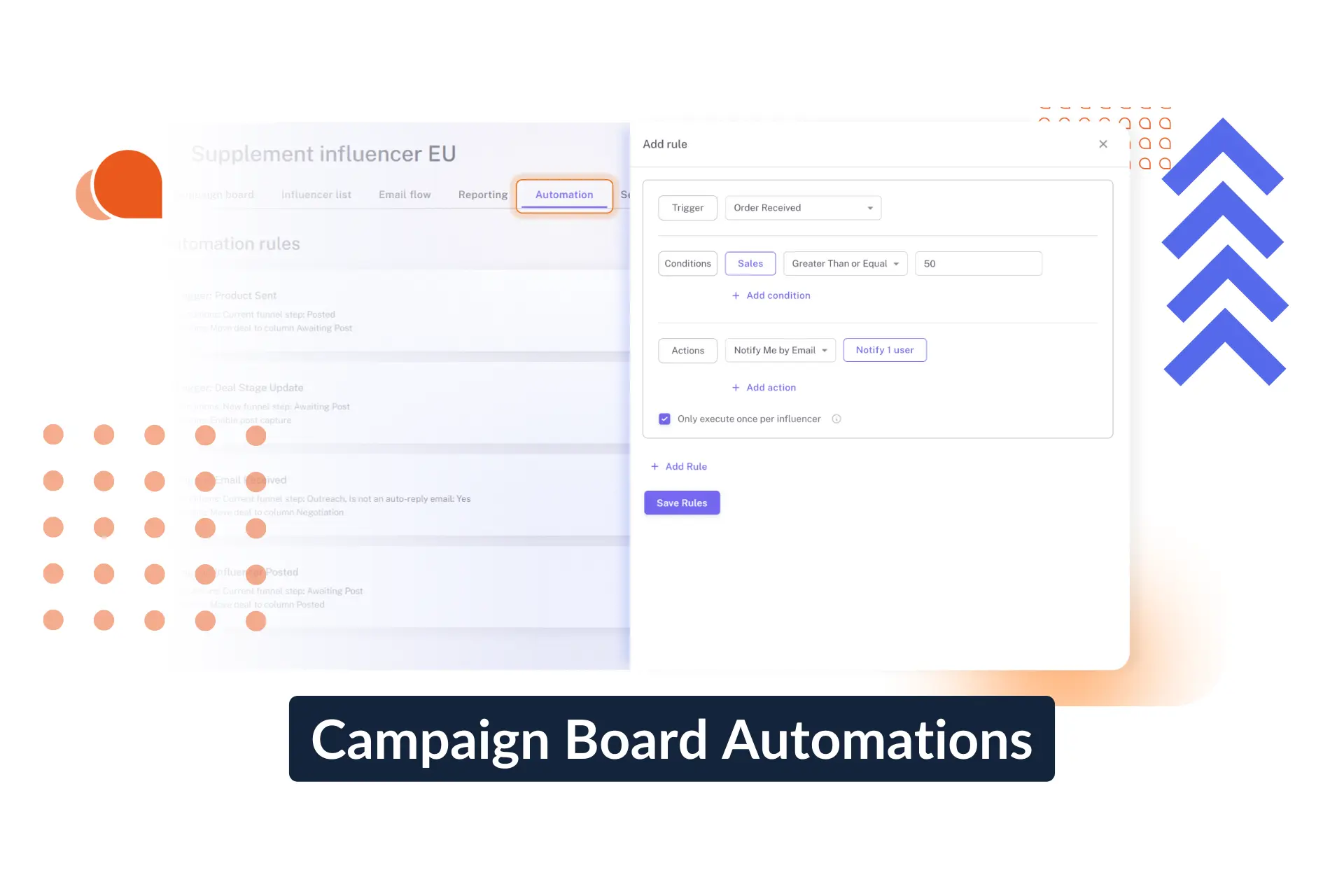 This update replaces the previous fixed Campaign Board logic with flexible, user-managed automation rules. Instead of relying on system-defined behavior, you can now define exactly how your influencer deals progress - automatically.