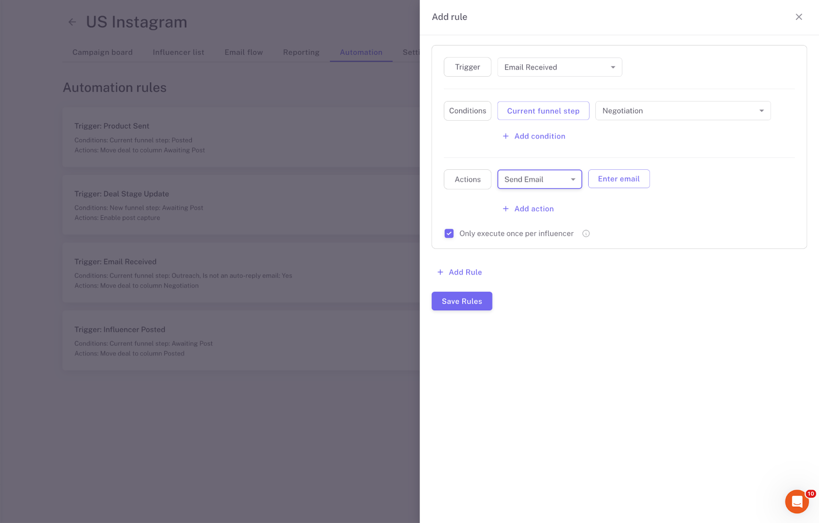 Automations remove repetitive manual tasks, reduce human error, and ensure consistent deal handling across your team. As campaigns grow, automated influencer workflows make it easier to scale operations without increasing operational complexity.