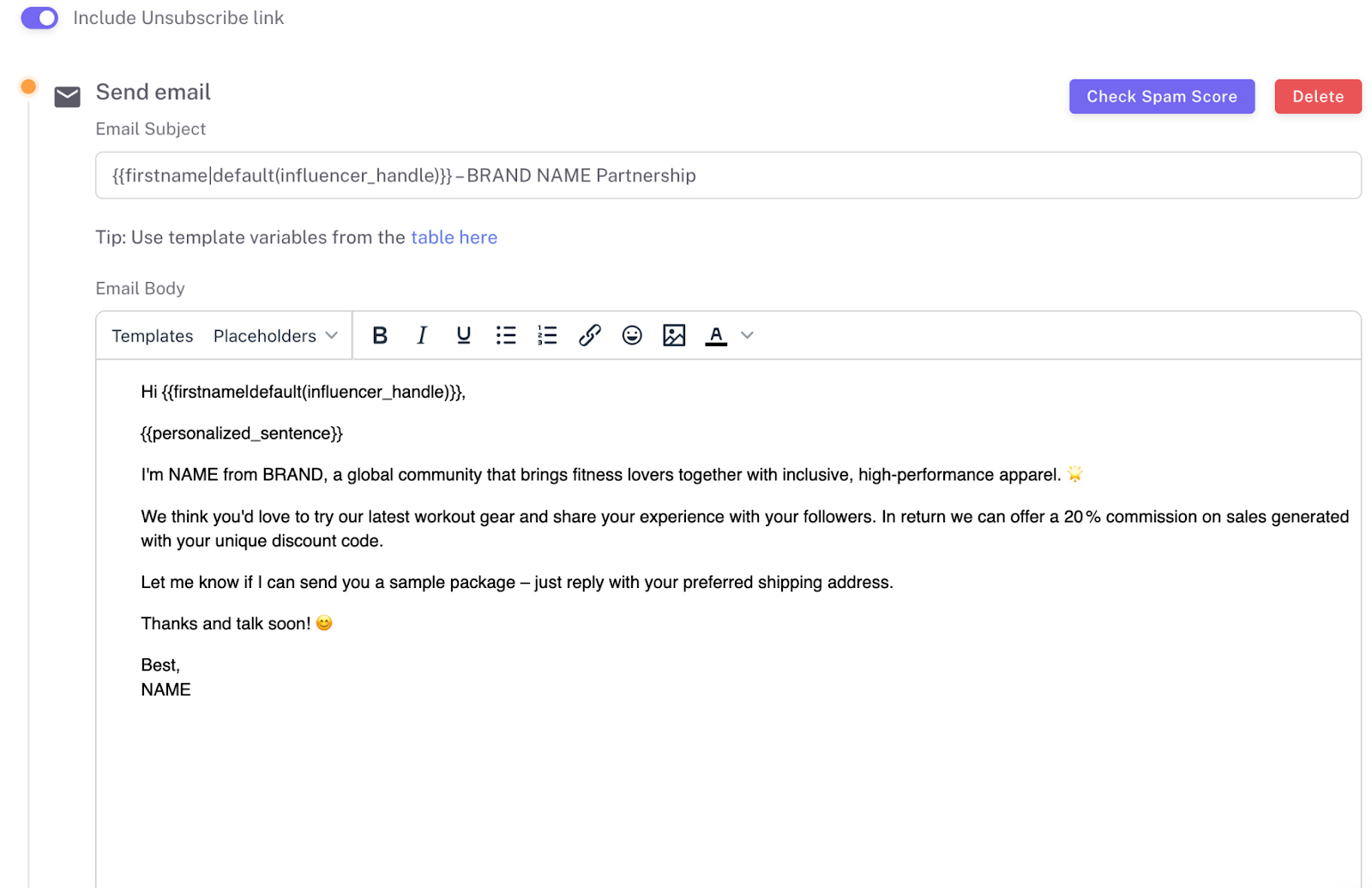 The AI generates a complete, professional outreach sequence in seconds—fully editable to match your brand voice. You can also start from our proven outreach templates, like these free Instagram influencer partnership emails from Influencer Hero, to speed up campaign launch.