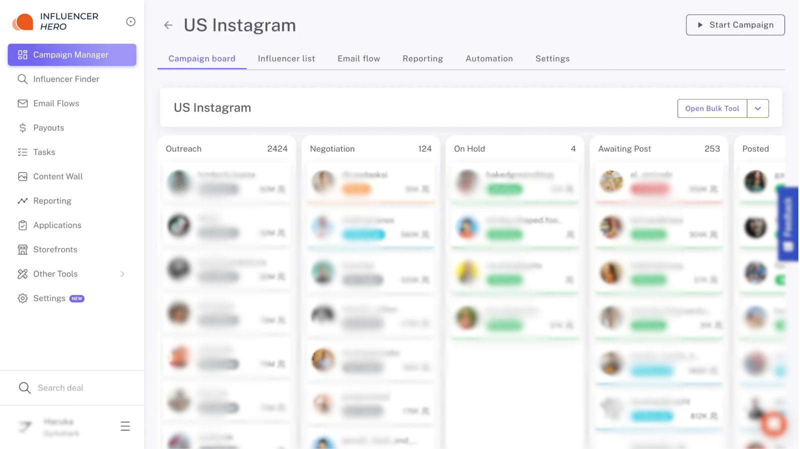 This section focuses on what you can actively execute once your campaign is live — how you organize creators, personalize outreach at scale, manage conversations, and track performance inside Influencer Hero.