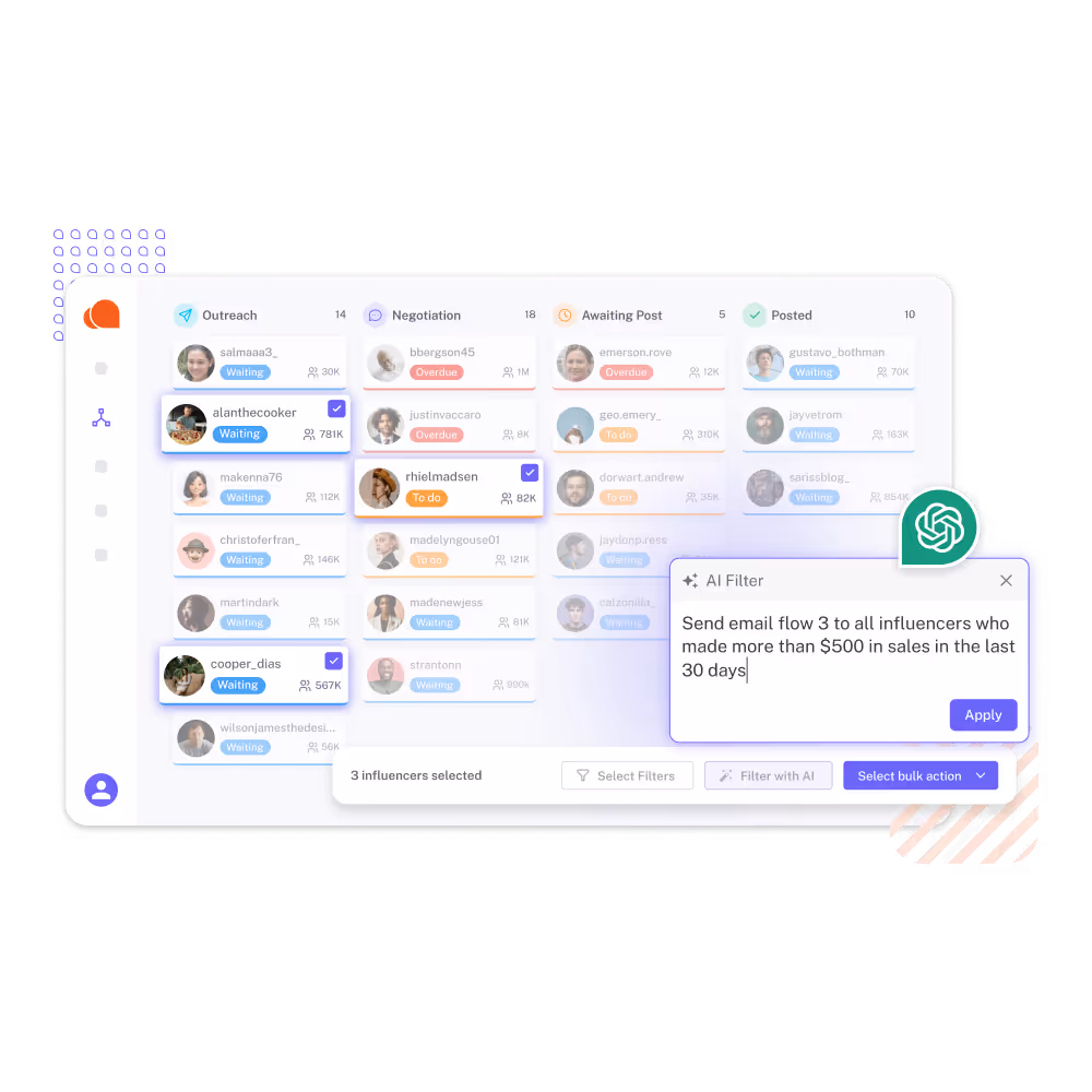 After an influencer makes their first post, you can easily move them into a dedicated relationship board designed to help you nurture and grow that connection. In fact, your top-performing influencers often drive the majority of your ROI. That’s why having the right tools to manage and strengthen these relationships is a key feature every good influencer CRM should provide.