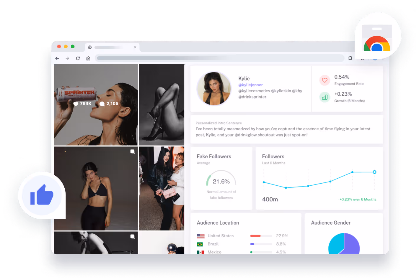 Ensure you are targeting the right audience by analyzing audience demographics. Gone are the days of guessing whether your next collaboration will be successful. Besides our tool you can also install our influencer audit chrome extension to effortlessly analyse influencers on the go.